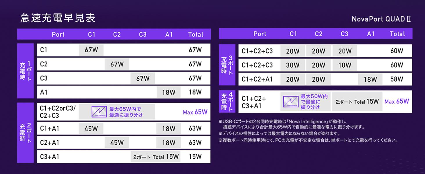 ちなみに、同時に2ポート以上使用すると、NovaIntelligence機能が作動し、接続機器に合わせて電力を振り分けてくれるそうです。