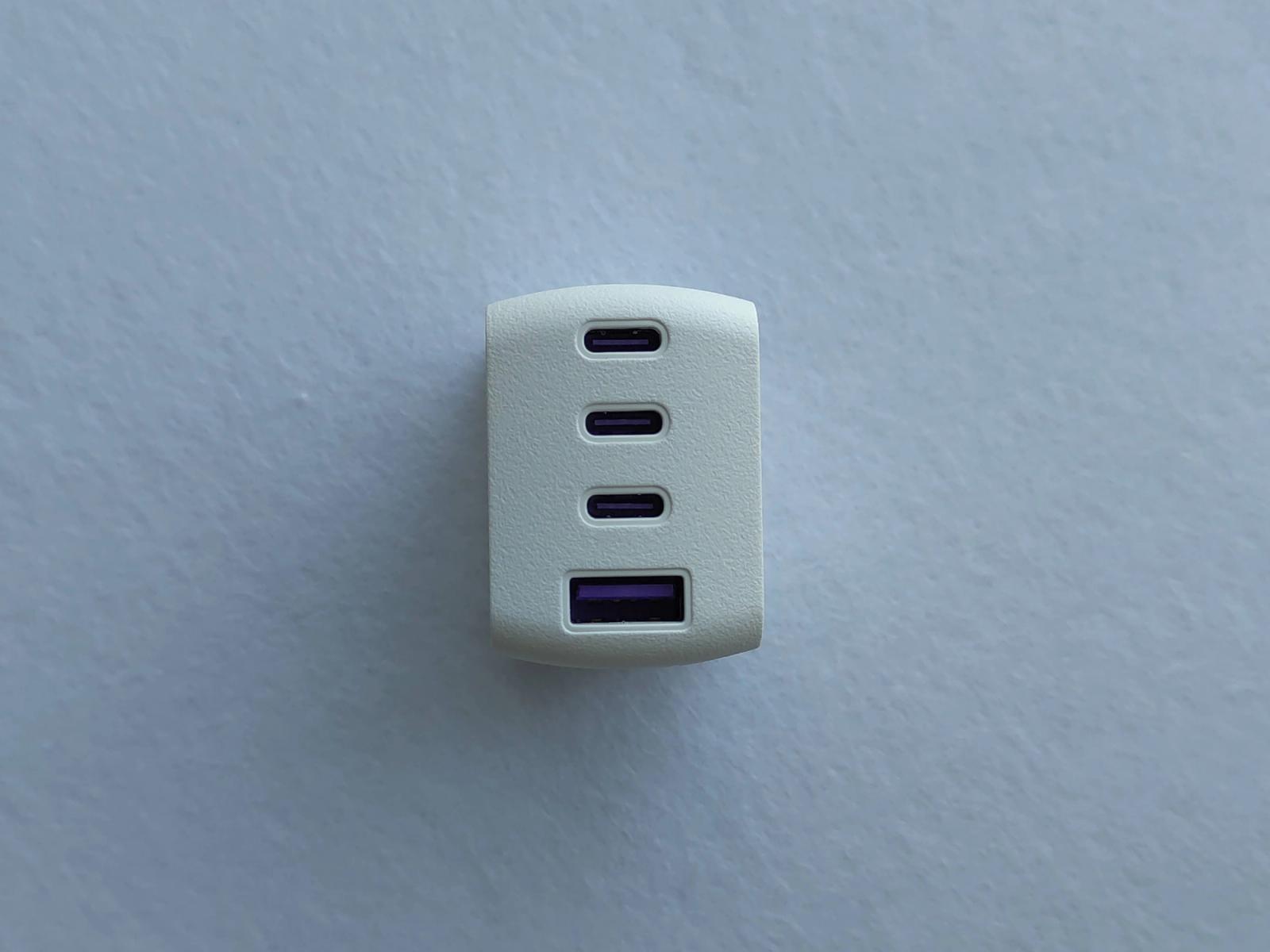 ポート構成はUSB-C×3(単独使用時のみ最大67W)、USB-A×1(最大18W)となっています。