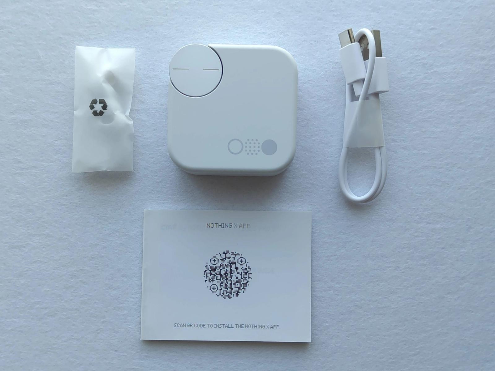 イヤホンケースの外観は角丸な正方形で、左上に操作可能なダイヤルと、その対角にCMFのロゴが印刷されています。この製品の特徴的な機能が、このスマートダイヤル。