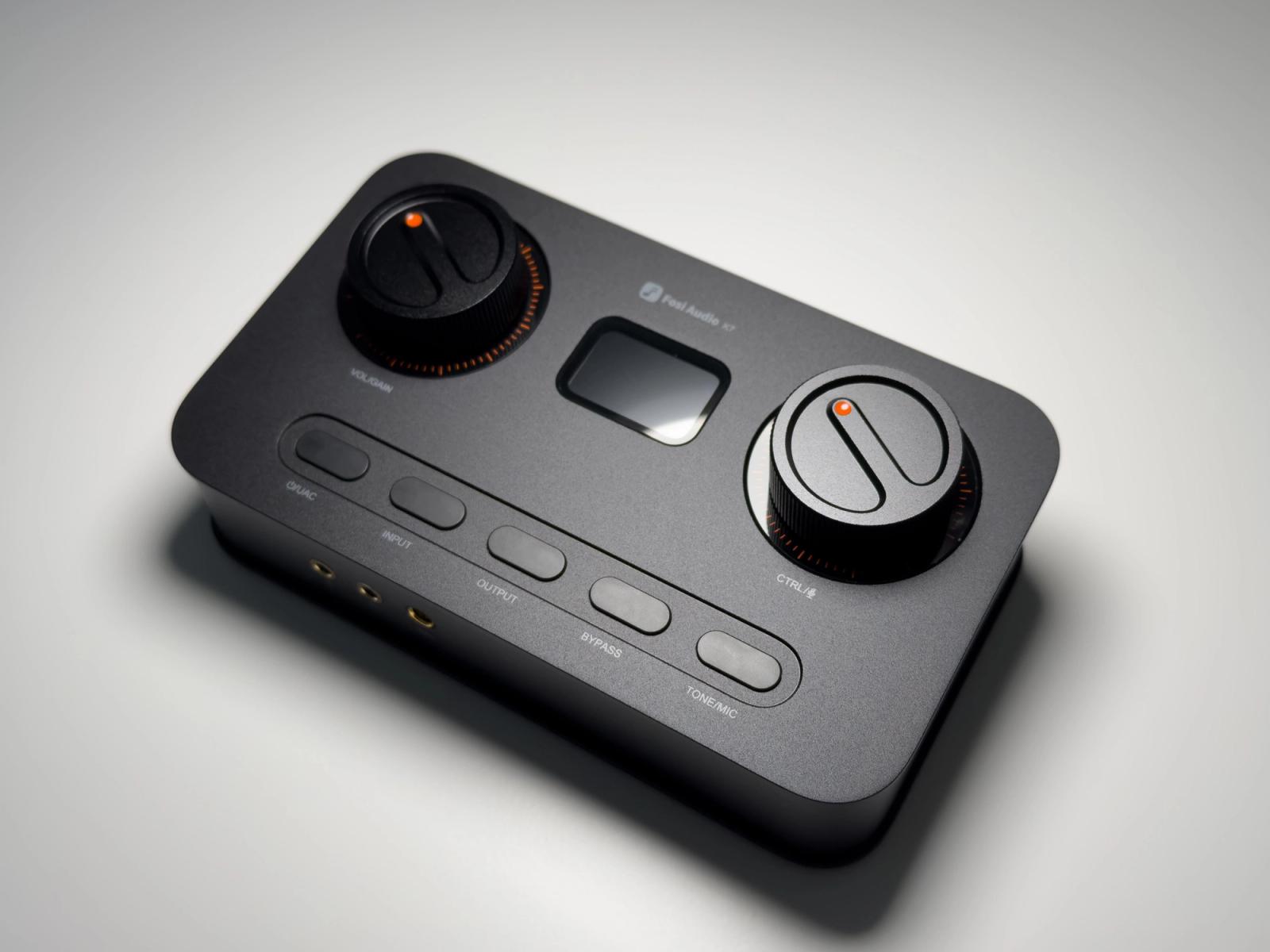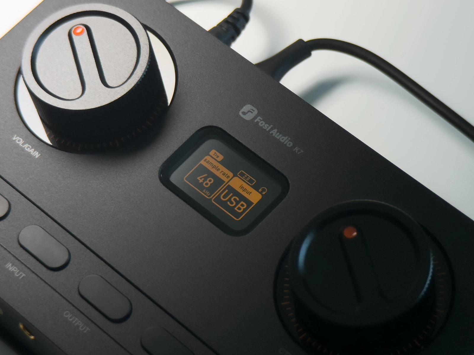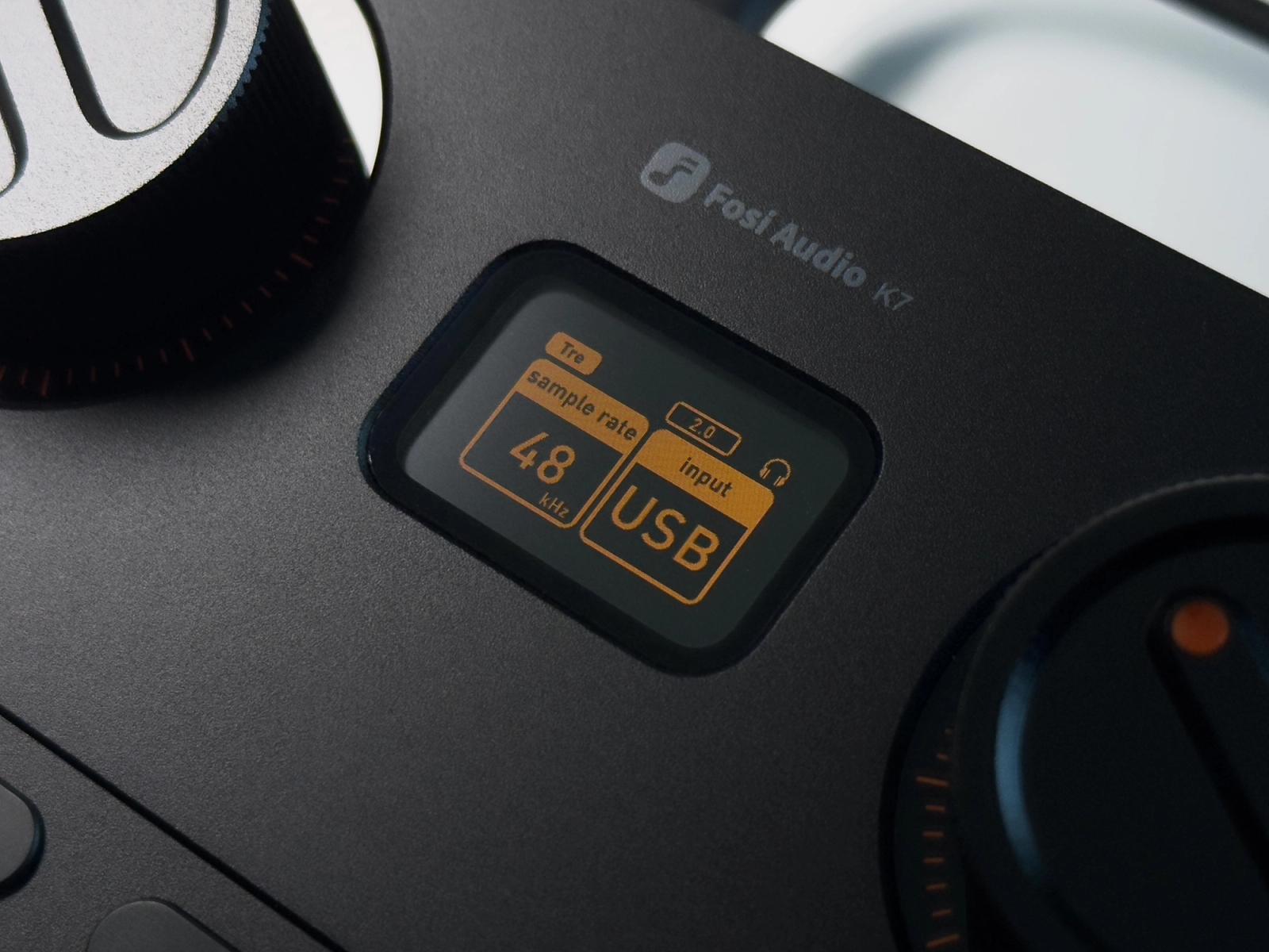 中央部には1.5インチのLCDディスプレイが配置され、EQモードやサンプルレートなどを直感的に確認しやすいです。やや前面に傾斜がついている設計になっているので、机に置いた状態でも見やすいのがポイントです。