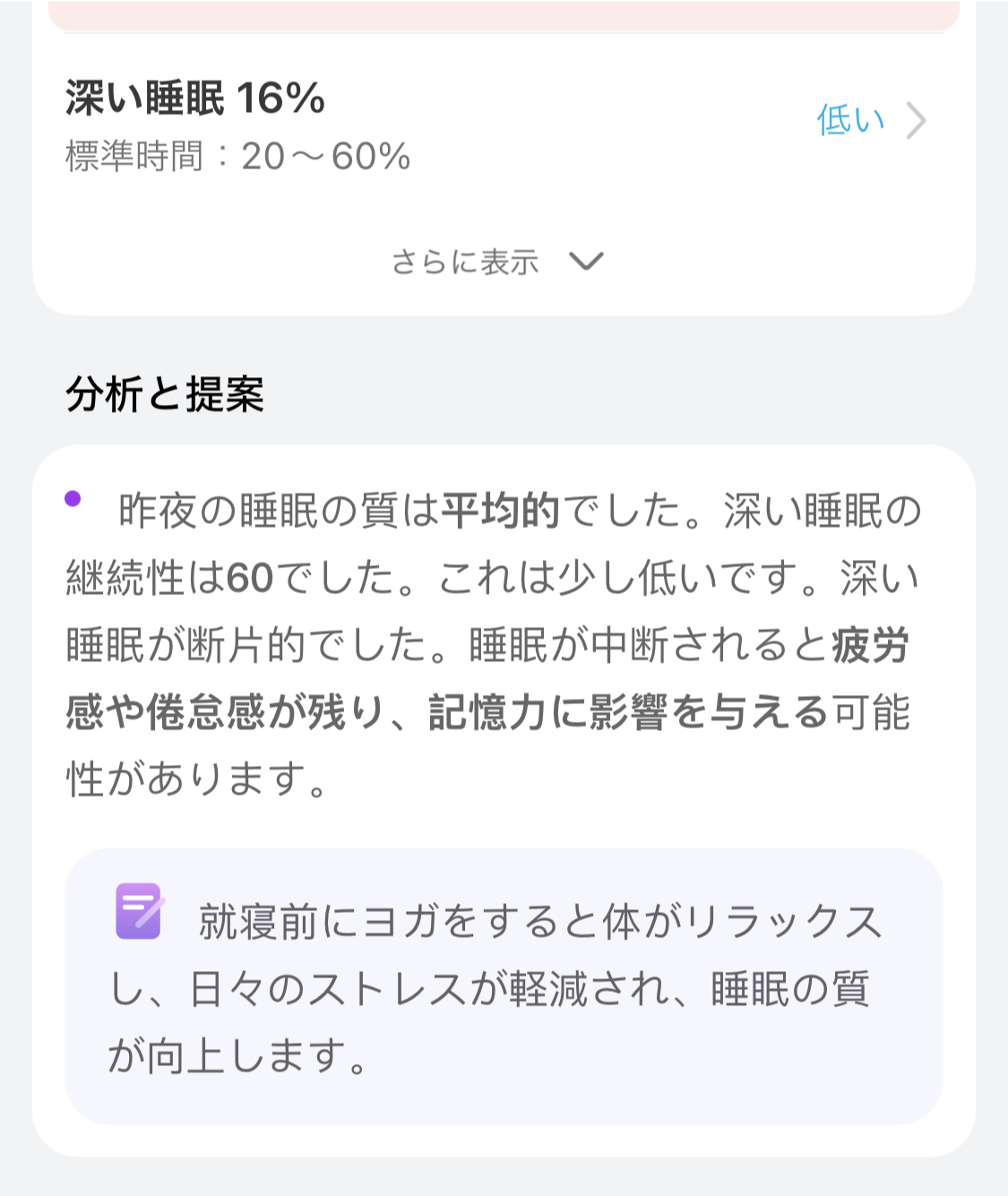 また、分析結果に基づいてちょっとしたTipsを教えてくれる機能もあります。