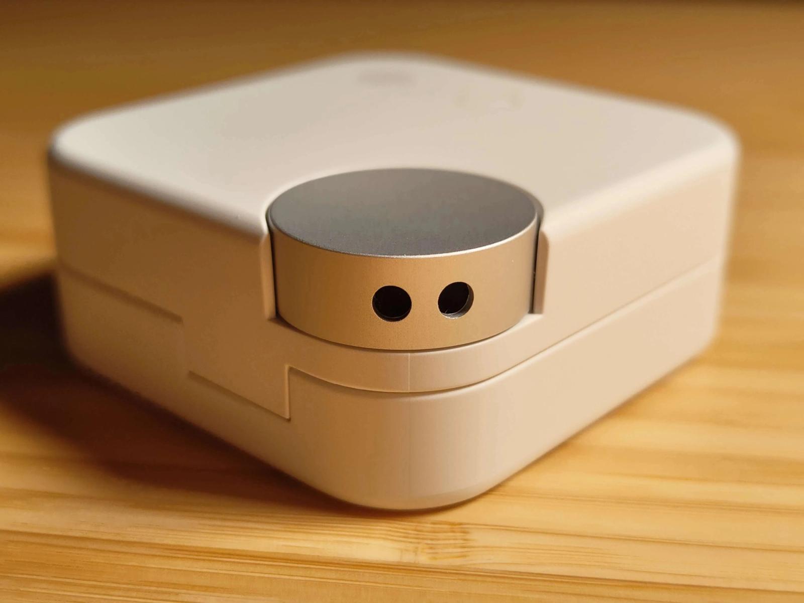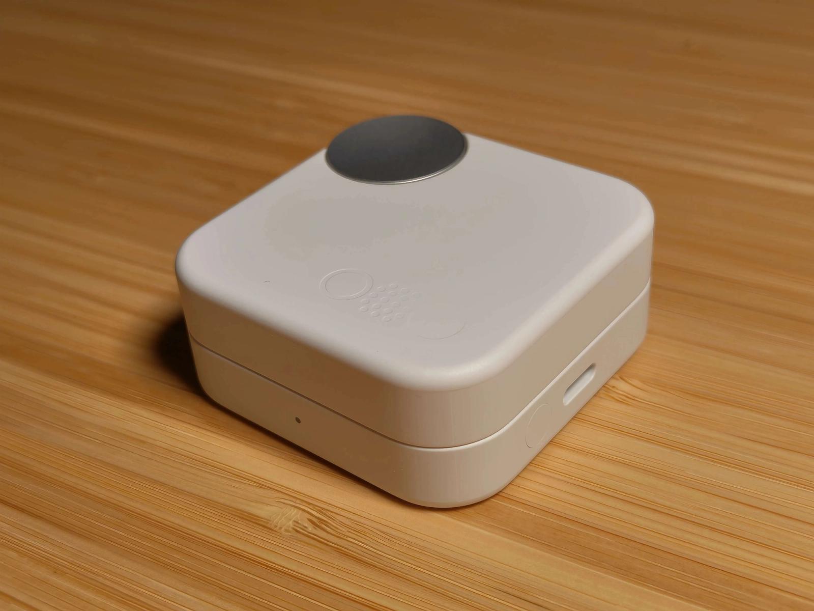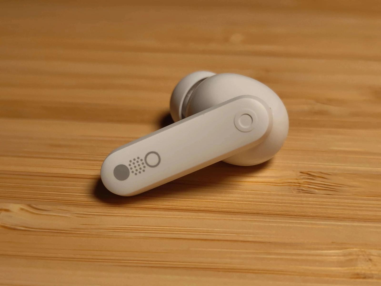 CMFロゴのおかげか、なんだかかわいく見えます。指で持つ部分はさらさらしていて、指紋が付きにくい質感。表には再生/停止などが行えるタッチセンサーが備えられています。小さな丸がその印ですが、左右で見た目が若干ちがいますね。