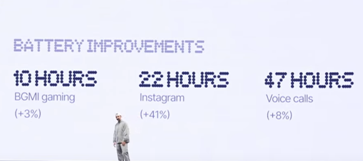 チップセットにはTSMCの4nmプロセスで製造されたMediaTek Dimensity 7300 Pro 5Gを採用。BGMI(インド版PUBGモバイル)を最大120fpsで快適にプレイ可能です。