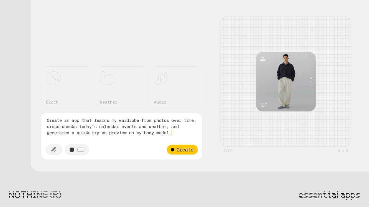 まず、Essentialについては現在α版で、アクセスは段階的に解放されるとのこと。また、Nothing OS 4.0対応端末が中心で、Phone (3) はウィジェット最大6個、他モデルは最大2個までとなっています。安定化とAPI拡張に伴い、上限は引き上げ予定とのこと。