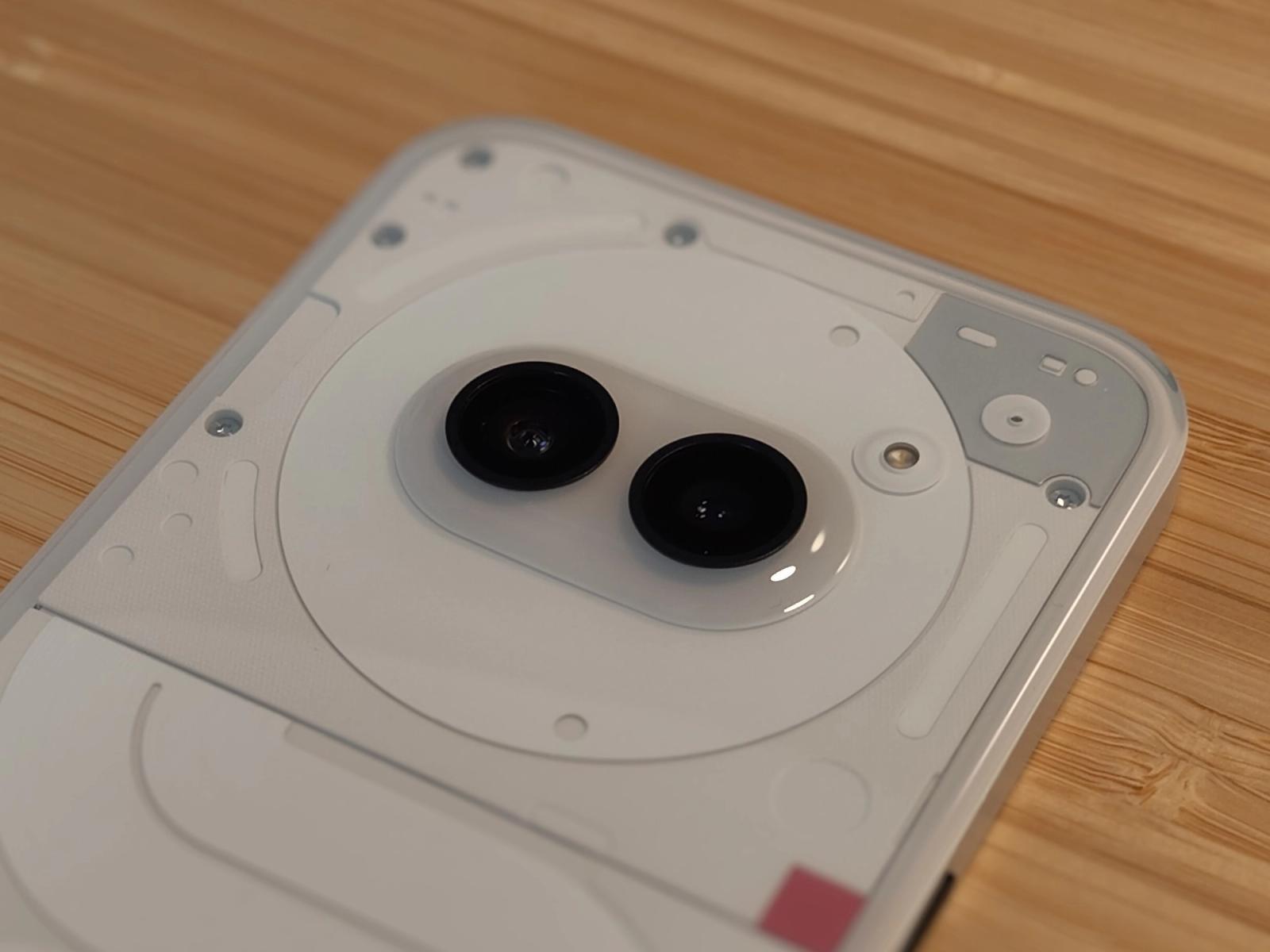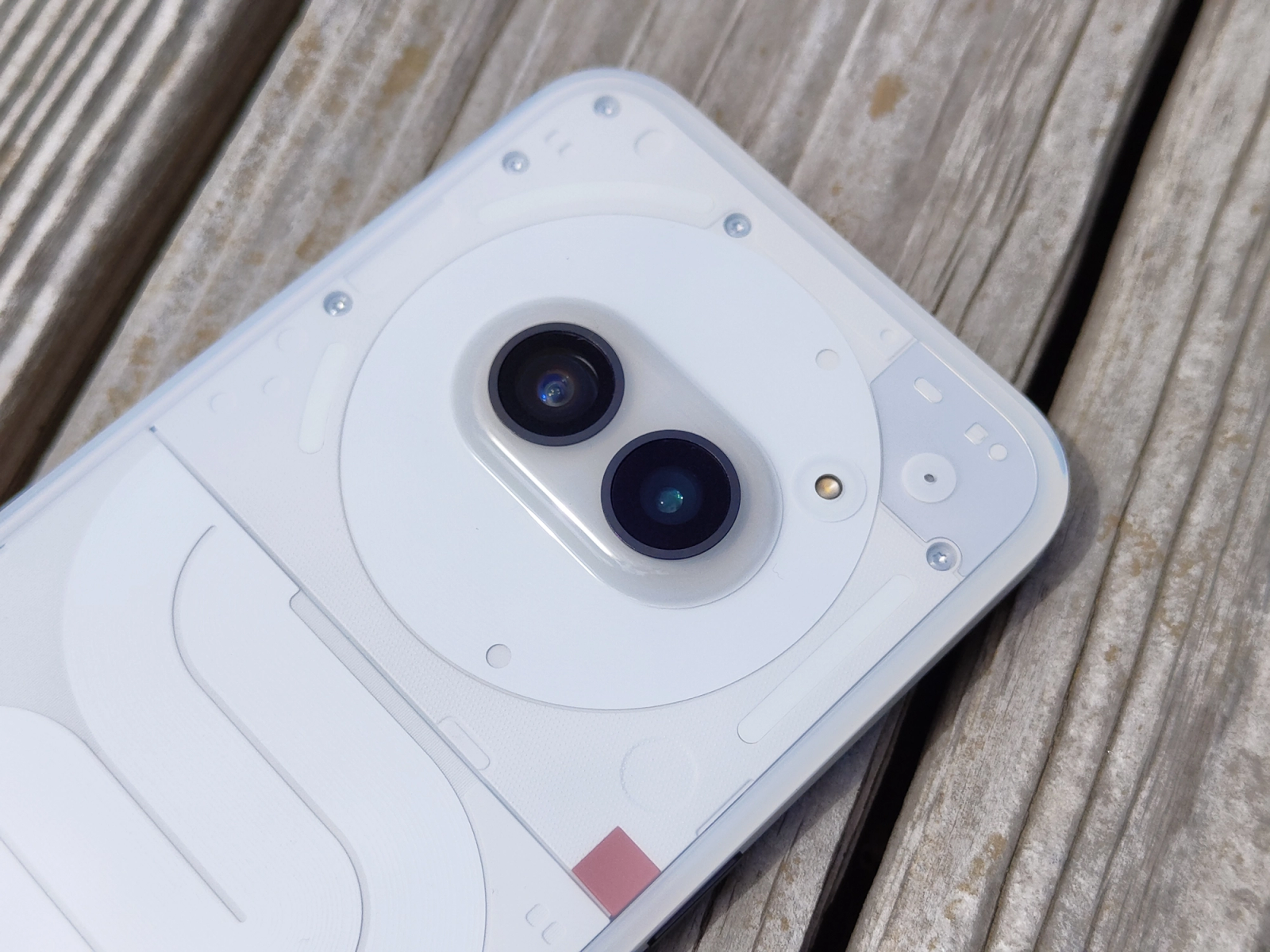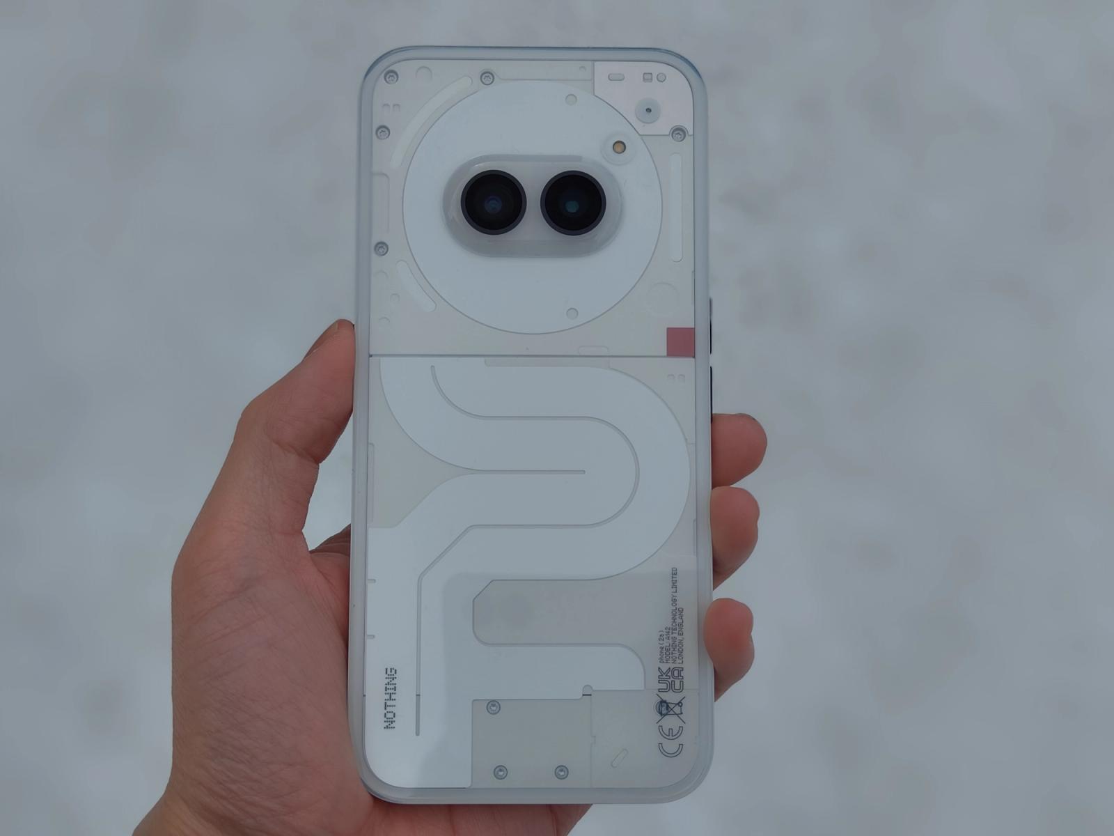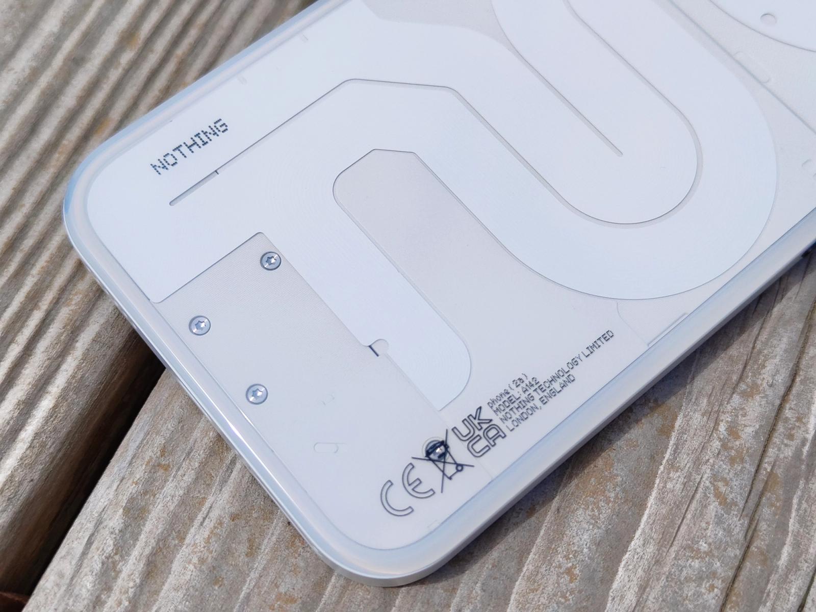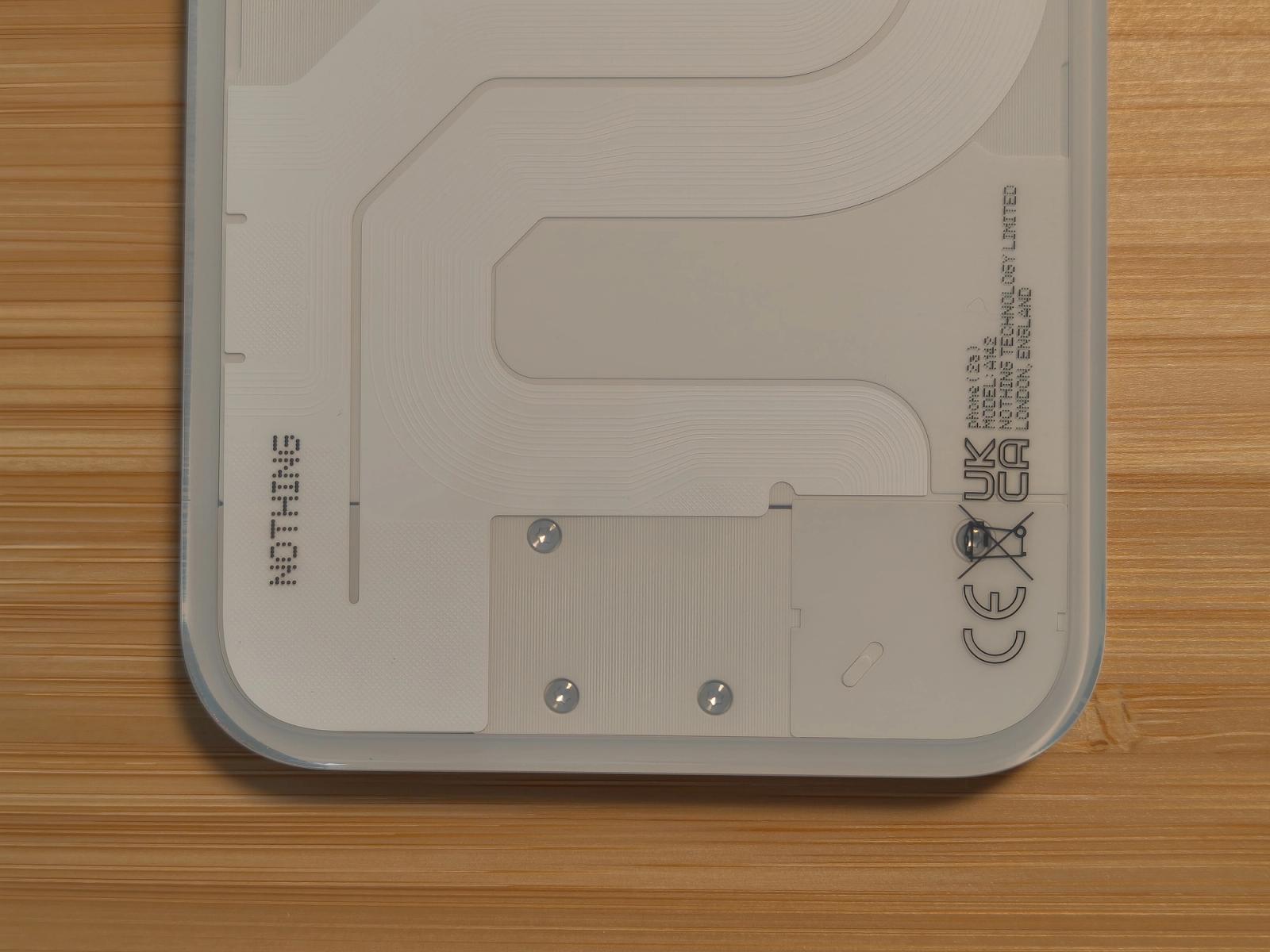 背面の上部にある円盤はNFCコイルで、その中心に2つのカメラが配置されており、またその周りにGlyph Interfaceが搭載されています。