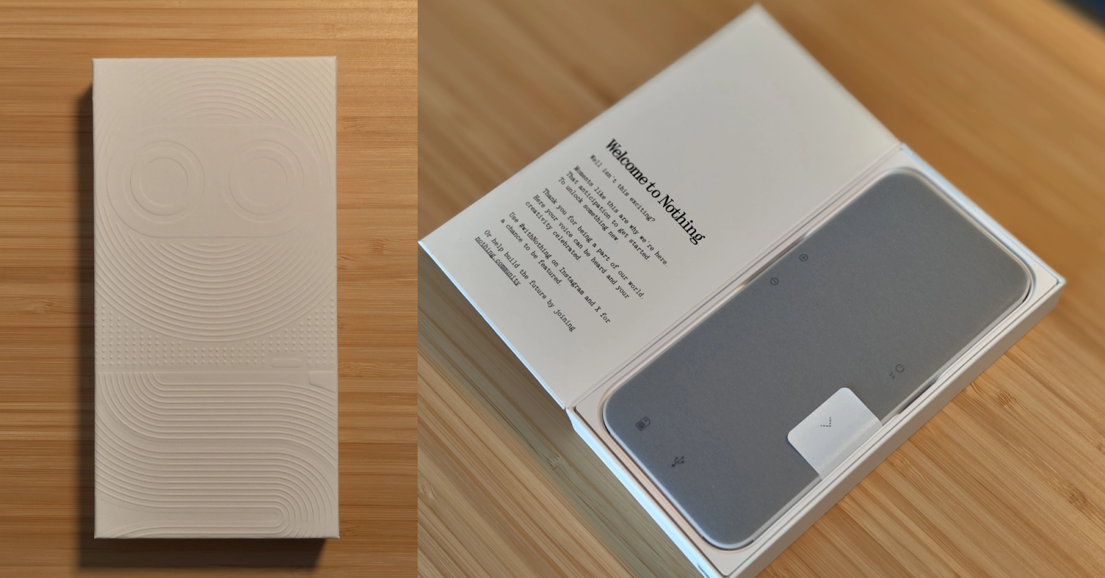 封を切ってみると、Phone (2a) がエンボス加工で表現された箱が出てきました。そこからさらに蓋を開けると、”Welcome to Nothing”の歓迎と共に、Phone (2a) 本体がお目見えに。