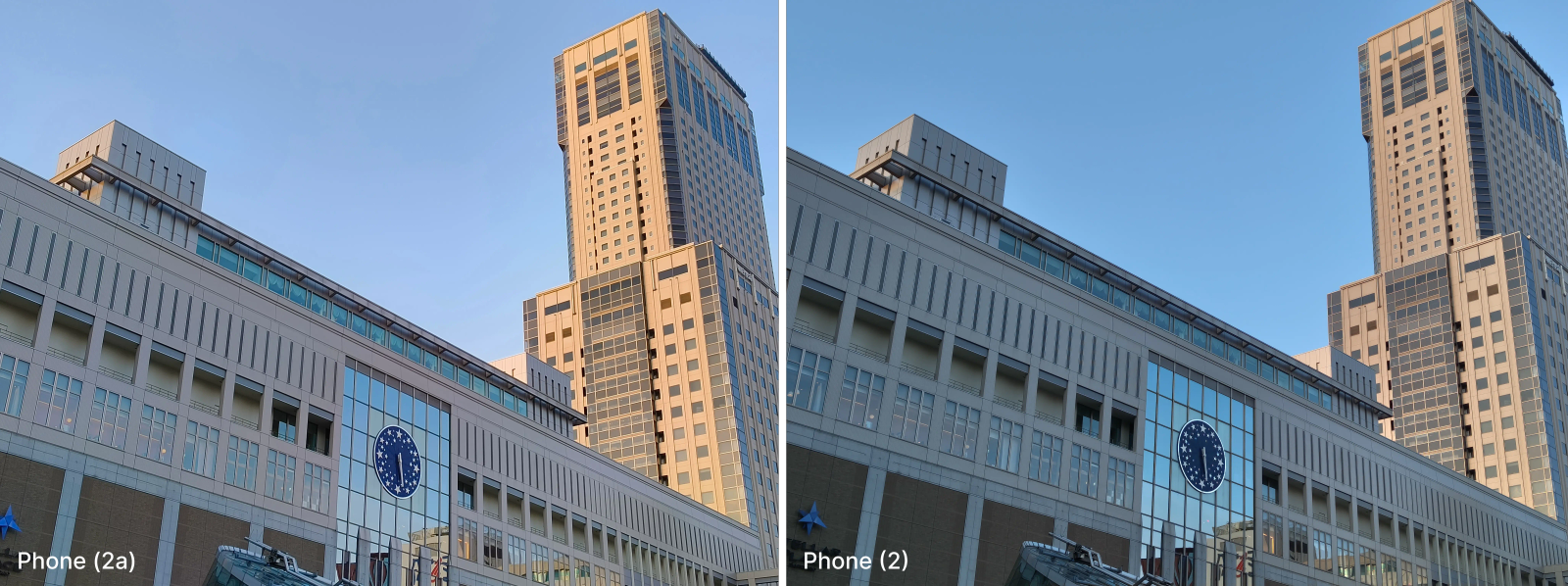 まずは屋外で撮影したものですが、そこそこ綺麗に撮れているかと思います。Phone (2)と比較してみると、Phone (2a)は全体的に明るい印象です。