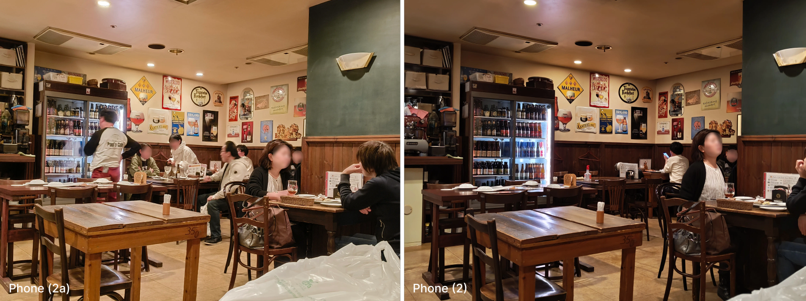 こちらの写真もPhone (2a)の方が明るく撮れていますね。