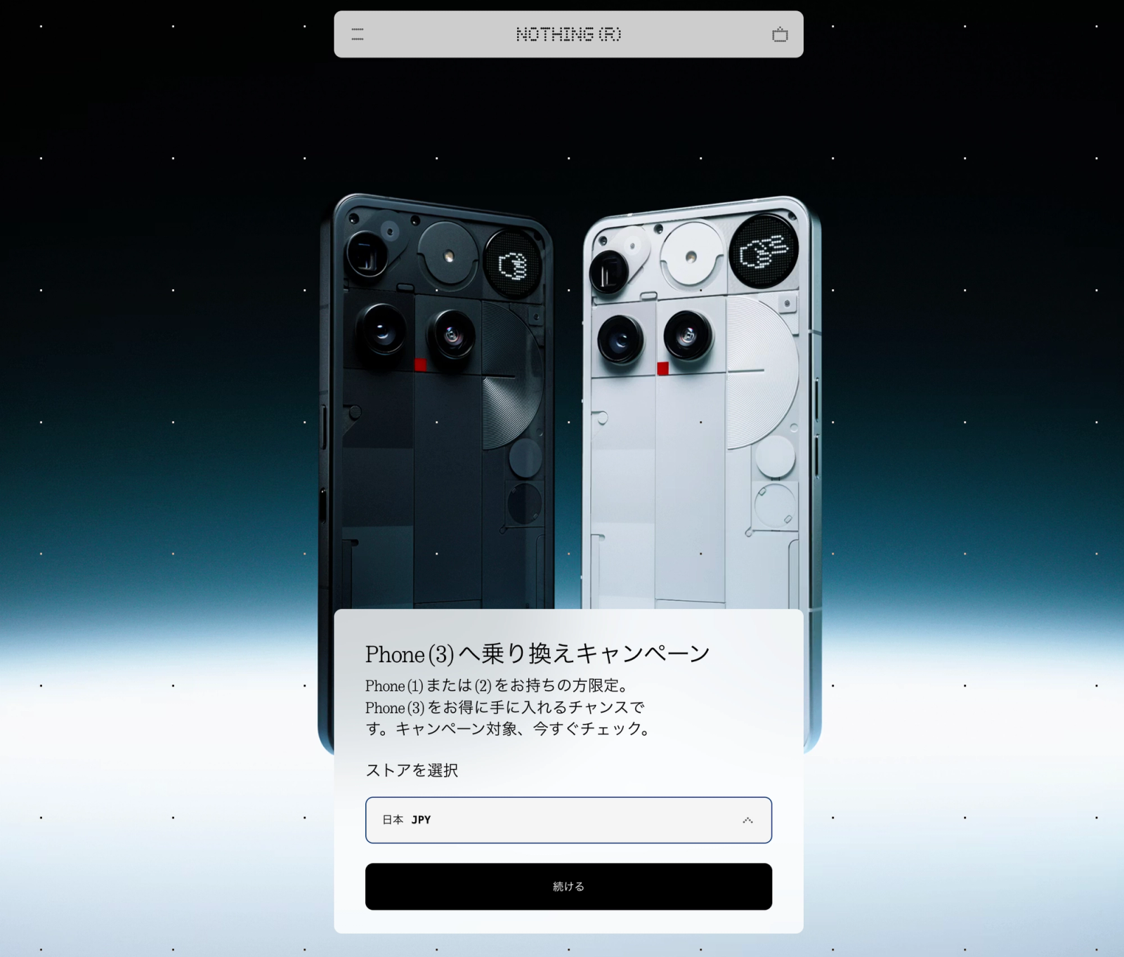 NothingがPhone (1)およびPhone (2) を所有しているユーザーを対象に、最新のPhone (3) を45,000円引きで購入できるキャンペーンを9月15日〜10月3日まで開催中です。下取り不要で、手続きはIMEI入力だけ。