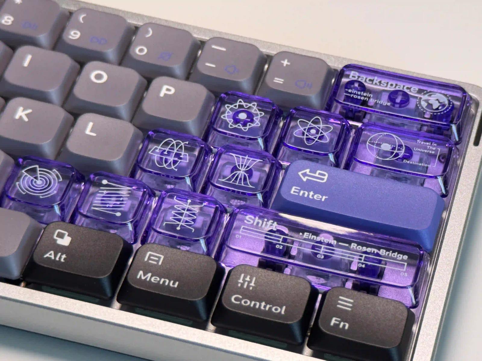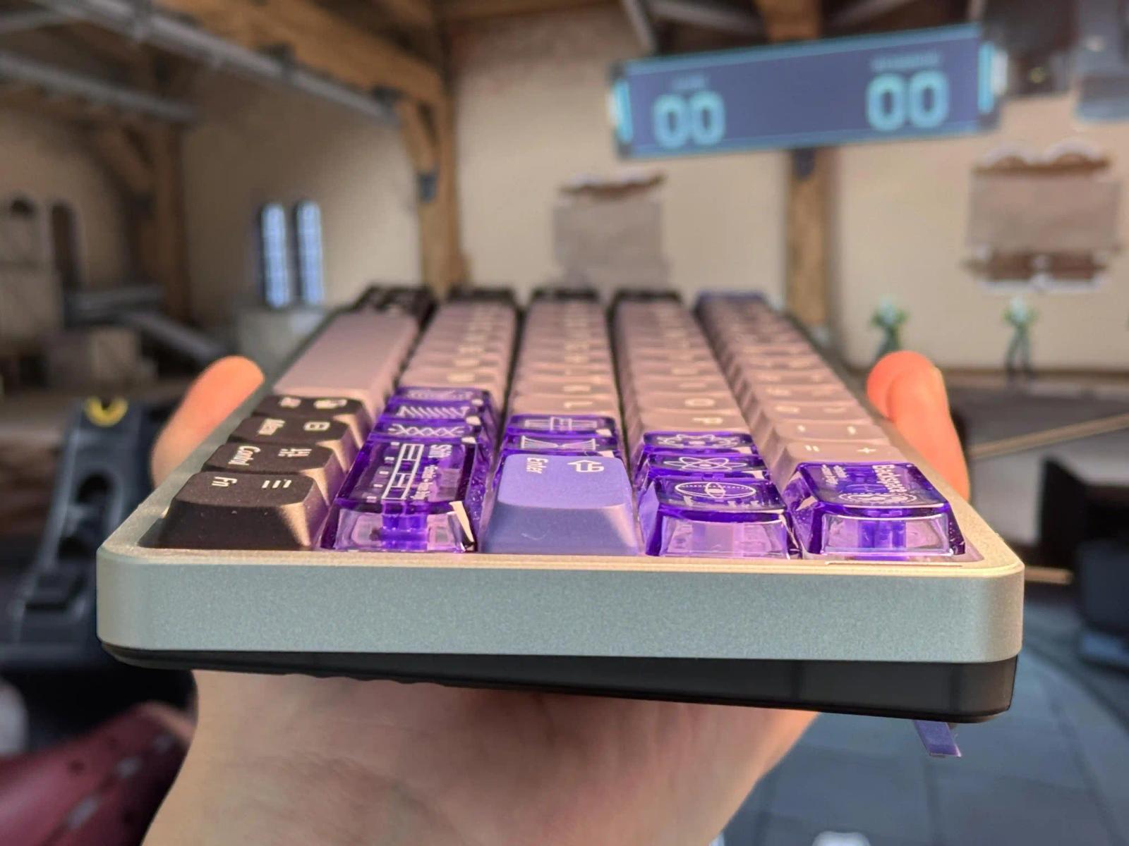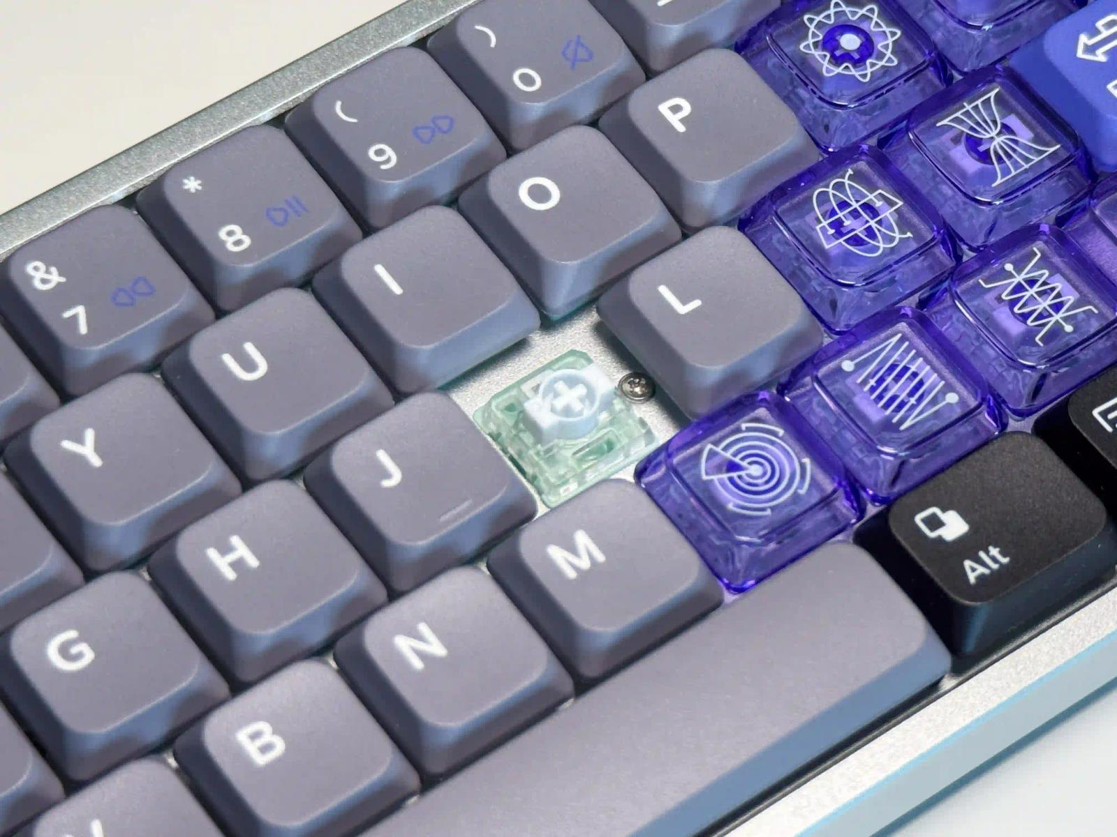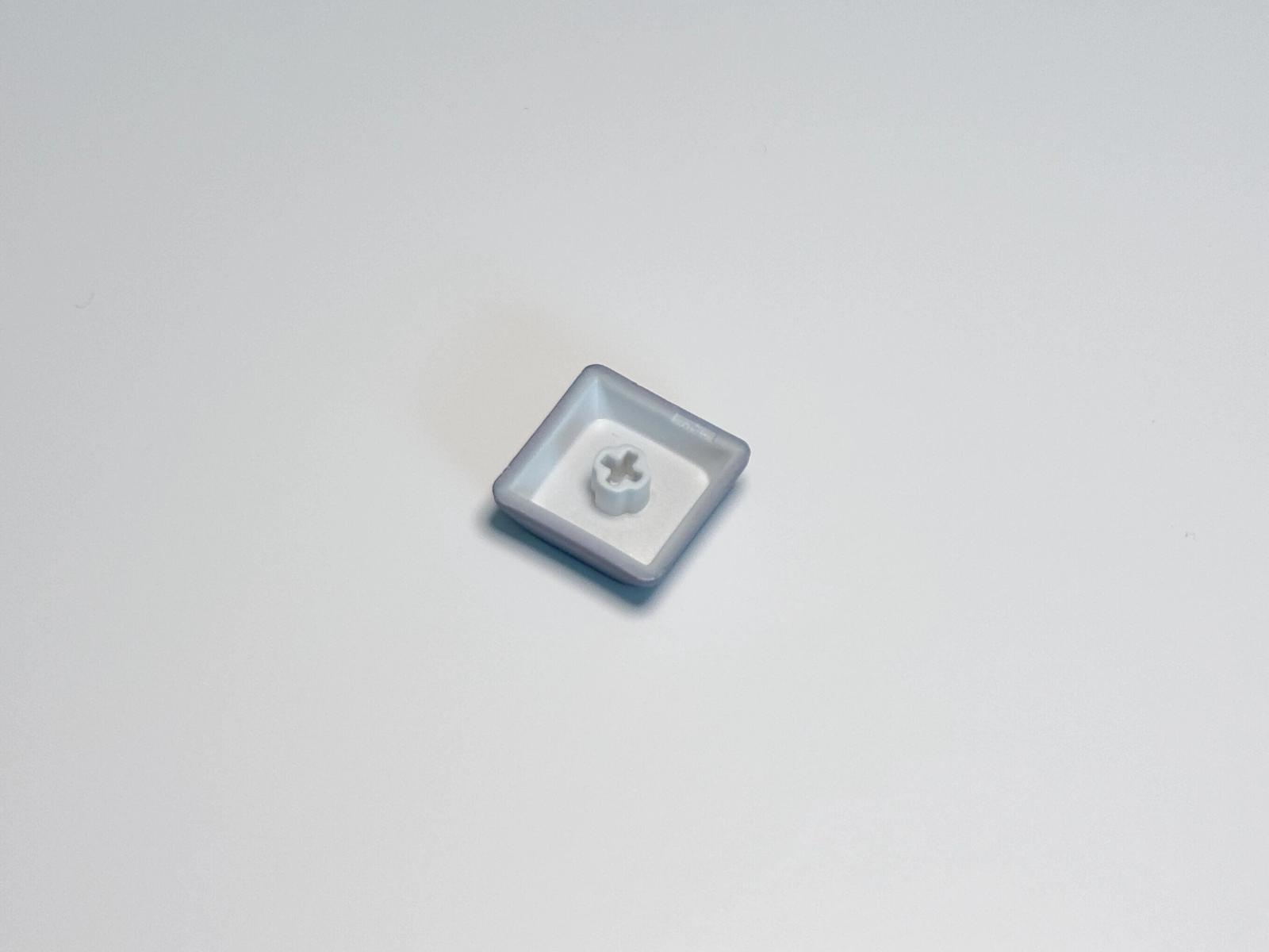 スケルトンキーキャップはツルツルしており、指紋が目立ちやすい印象だ。この部分は通常のキーキャップが付属しているので、好みに応じて付け替えよう。