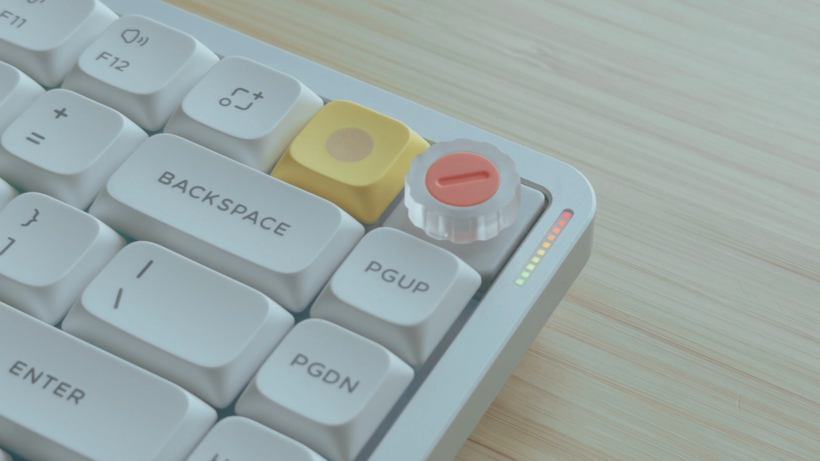 ノブは2種付属していますが、NuPhy Air75 V3独自の形状なので、他メーカーのノブと付け替えることはできません。3Dプリンターを持っている方は、オリジナルのノブを作成するのも楽しいかも。