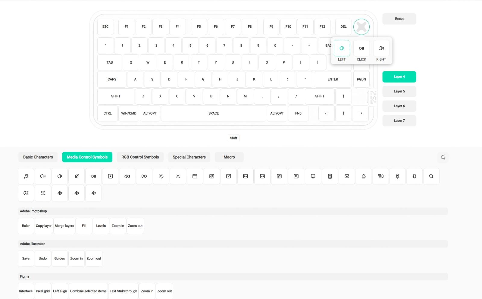 その3つの動作にメディアコントロールやPhotoshop、Figmaなどのツール系のショートカットも割り当てられる。