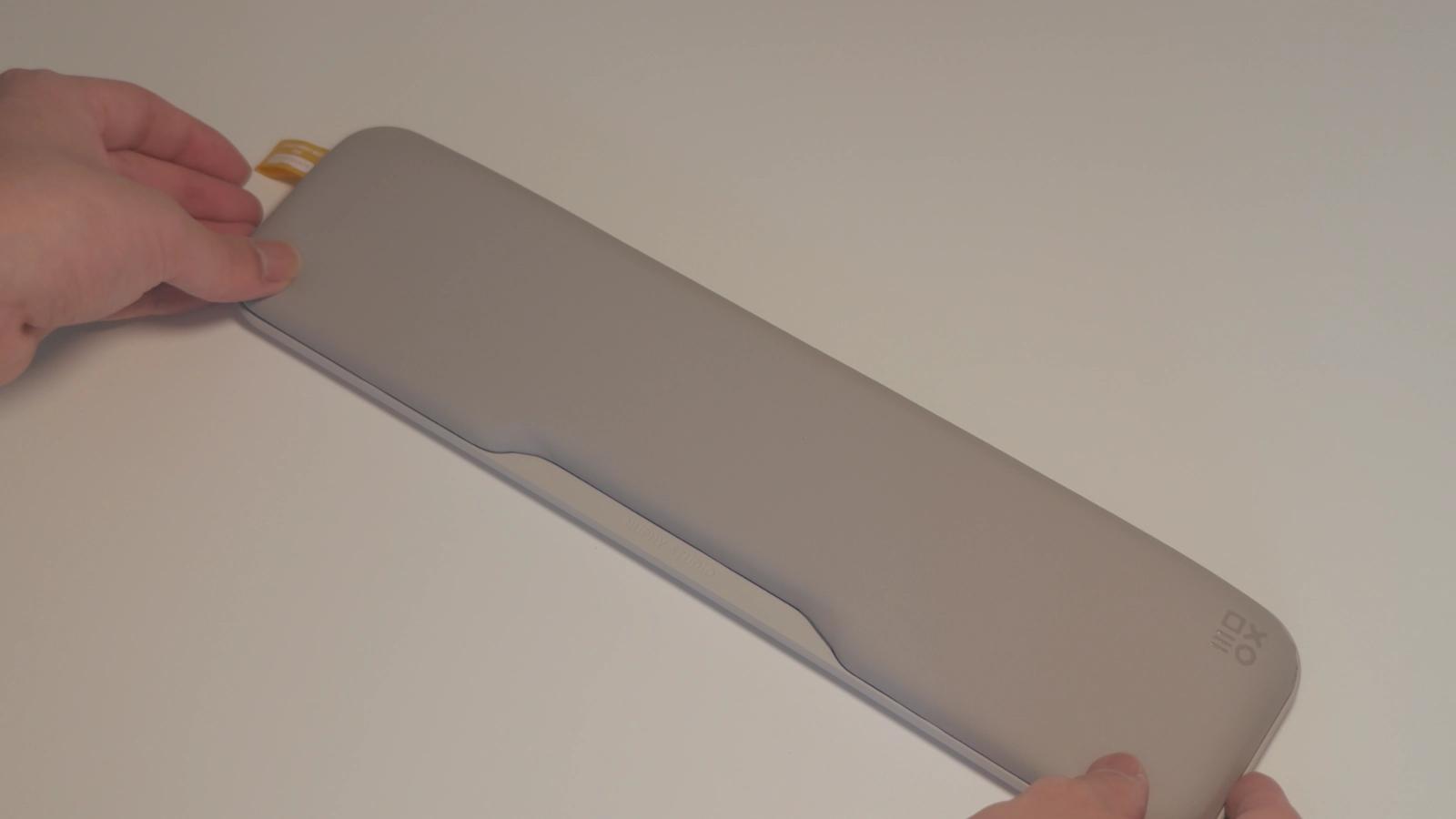 リストレストの下部は樹脂製で四隅にゴム製のすべり止めがあるので安定感がある。上部は手首を乗せると少し沈むくらいのクッション素材になっている。