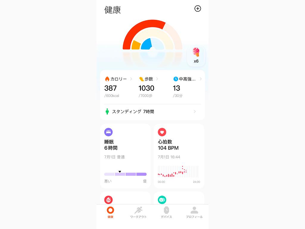 種類も豊富で、通知やアラーム、バイブパターンのカスタマイズも細かく設定できる。健康管理はあくまで目安だが、生活習慣の改善や日々の記録には十分役立つ印象だった。