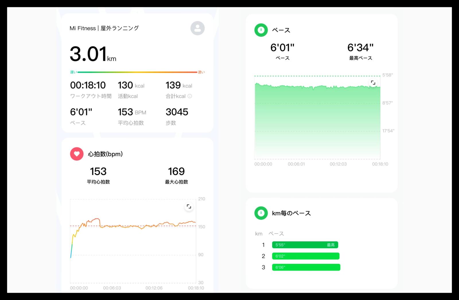 以前レビューしたHuawei Band 8よりも確認できるデータ項目は少ない印象ですが、アプリの使いやすさ・見やすさは、HuaweiのアプリよりもMi Fitnessに軍配が上がります。